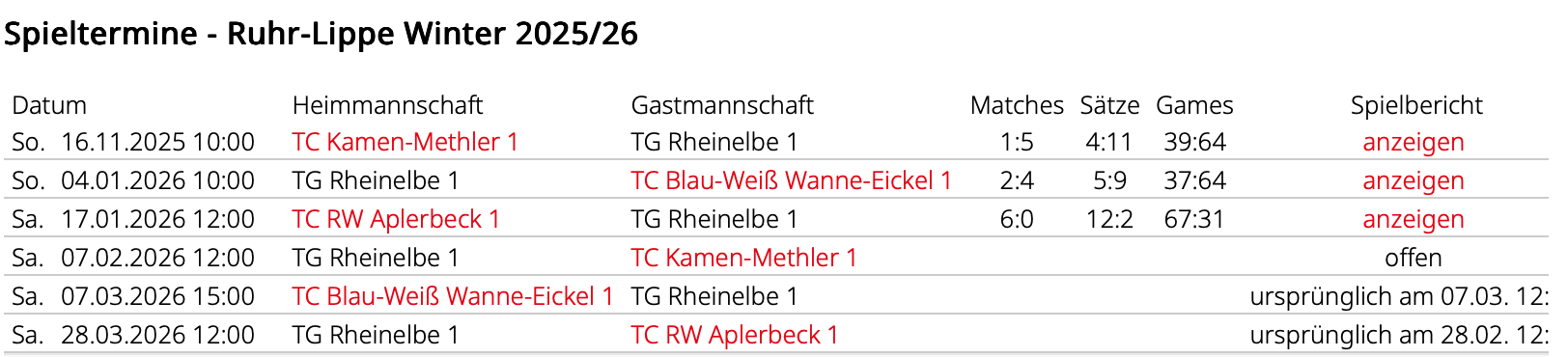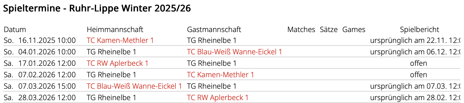 Spielplaene fuer Winter 2025-26 (weitere Updates folgen)
